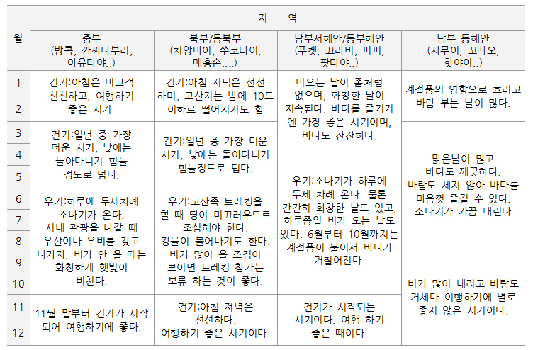 단, 태국은 지역마다 기후가 다르기 때문에 사전에 확인 후 여행 준비하시는 것이 좋습니다.