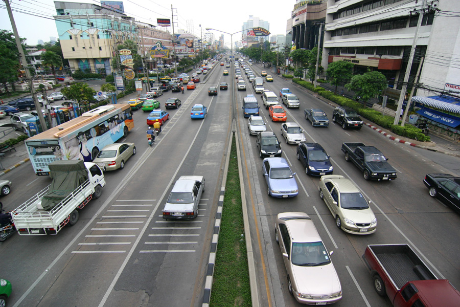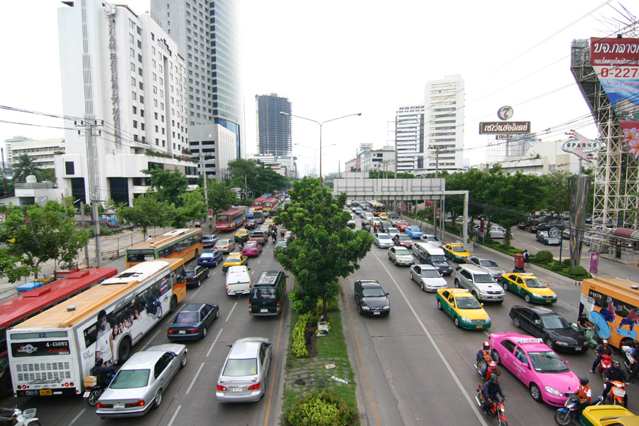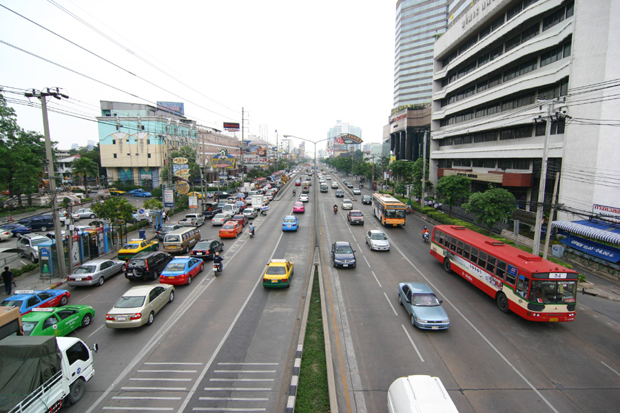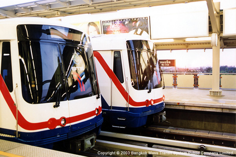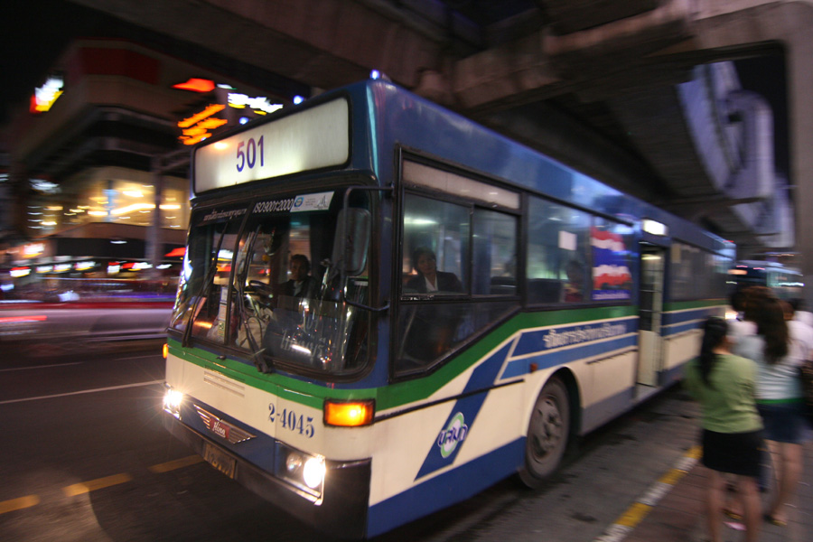 에어콘이 없는 빨간버스(3.5Baht), 에어콘이 있는 파란색버스(8 Baht), TV가 달려있는 마이크로 버스는 (20Bah) 등 3종류가 있다. 버스의 운행시간 오전 4시30분부터 밤 11시 이후까지 5~10분 간격으로 운행된다. 버스를 타면 안내양 혹은 요금수납 아저씨가 필통모양의 둥근 깡통을 들고 요금을 받으러 온다.