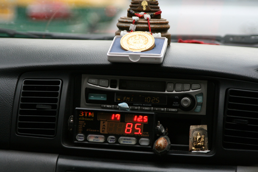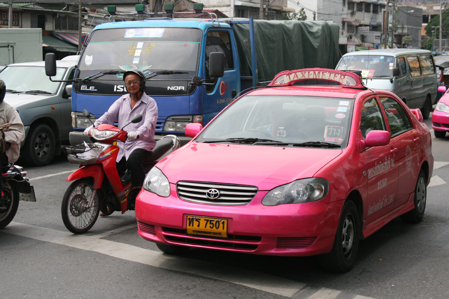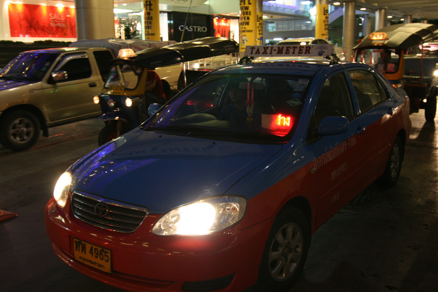 : 타기 전에 목적지에 따라 가격을 흥정하는 택시와 미터제 택시 2종류가 있다. 최근에는 TAXI METER 라고 쓴 간판을 부착한 미터제 택시가 많고 기본요금은 35바트이며 미터당 3바트씩 추가된다. 시내에서는 100바트면 어디든지 갈 수 있습니다.