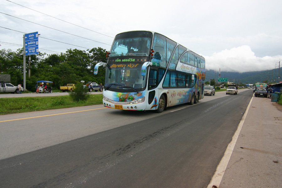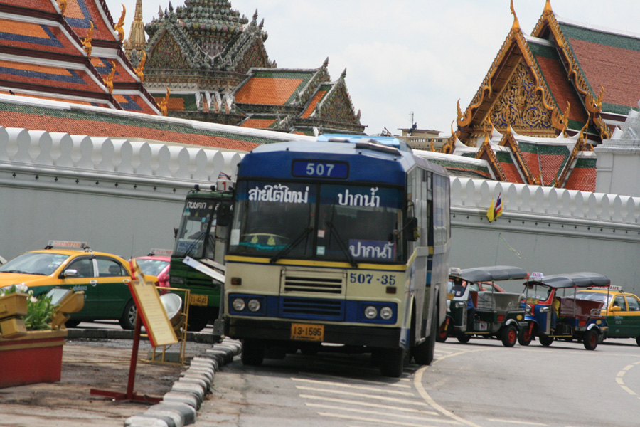 : 그 수가 많고 가격이 저렴한 교통수단이다. 호텔이나 서점, 태국관광청 사무소에서는 버스 노선지도를 구입할 수 있다.거리에 따라 다르나 보통 3바트(에어컨 버스 7바트)정도이다. 버스는 시내에서 가장 중요한 대중교통 수단으로 노선망은 꽤 발달되어 있다.